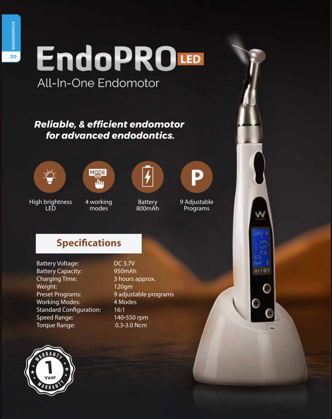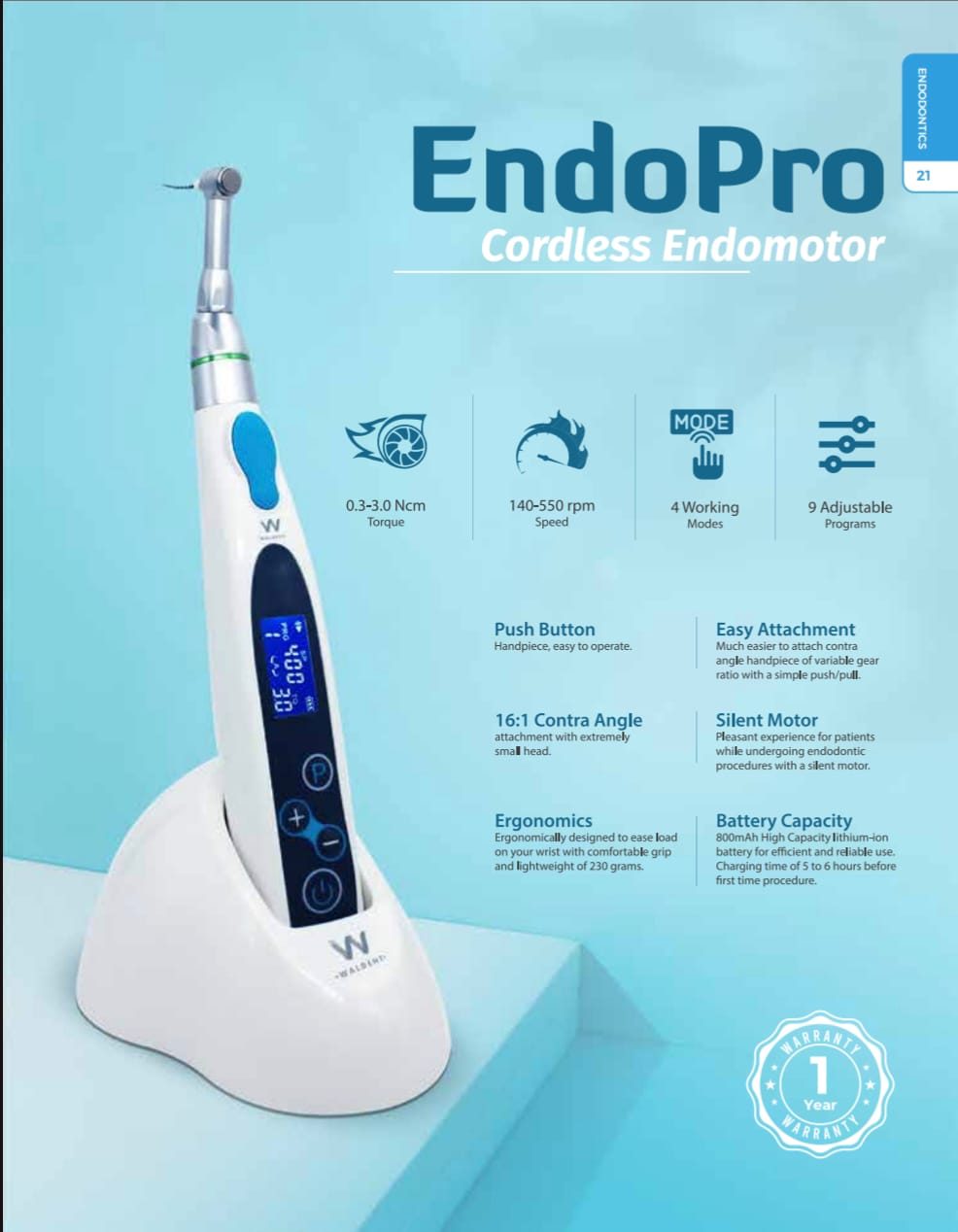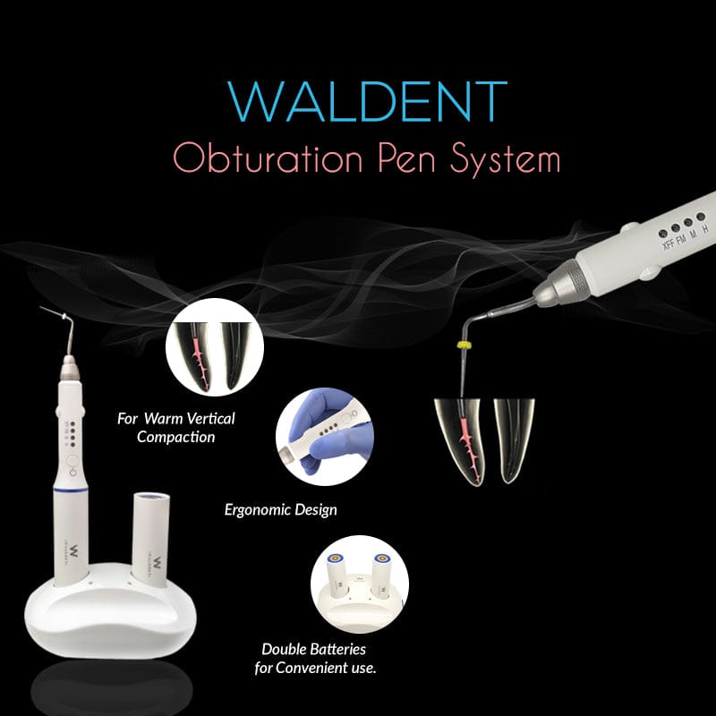 Waldent Obturation Pen System is a Cordless system used for Warm Vertical Compaction while doing RCT. Using Obturation Pen, one applies pressure in a vertical direction to the heat softened gutta percha and thereby causes it to flow and to fill the entire lumen of the canal. Shape of Apical foramen should not be moved.